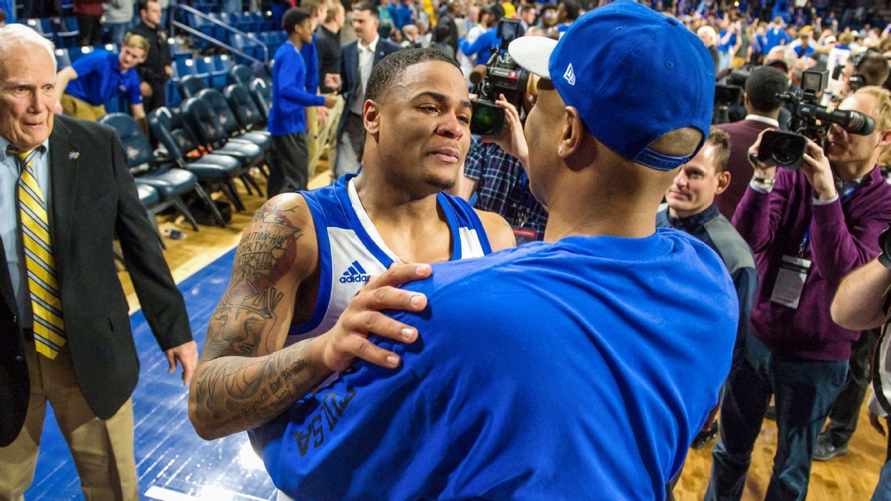 Tulsa guard elijah joiner and his father broderick embraced after joiner s game winning bucket.